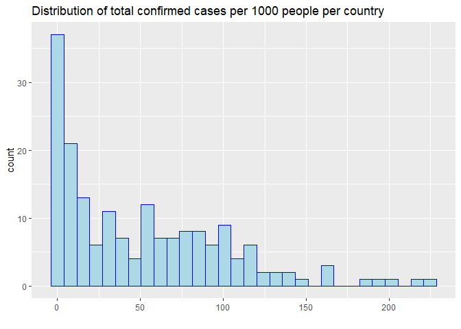 I made a scatter plot of case per capita versus the mortality. Surprisingly, we did not see a clear correlation between them. The observed morality is not higher in the countries with higher cases per capita. As I stated above, the observed mortality in some countries may not reflect the truth.